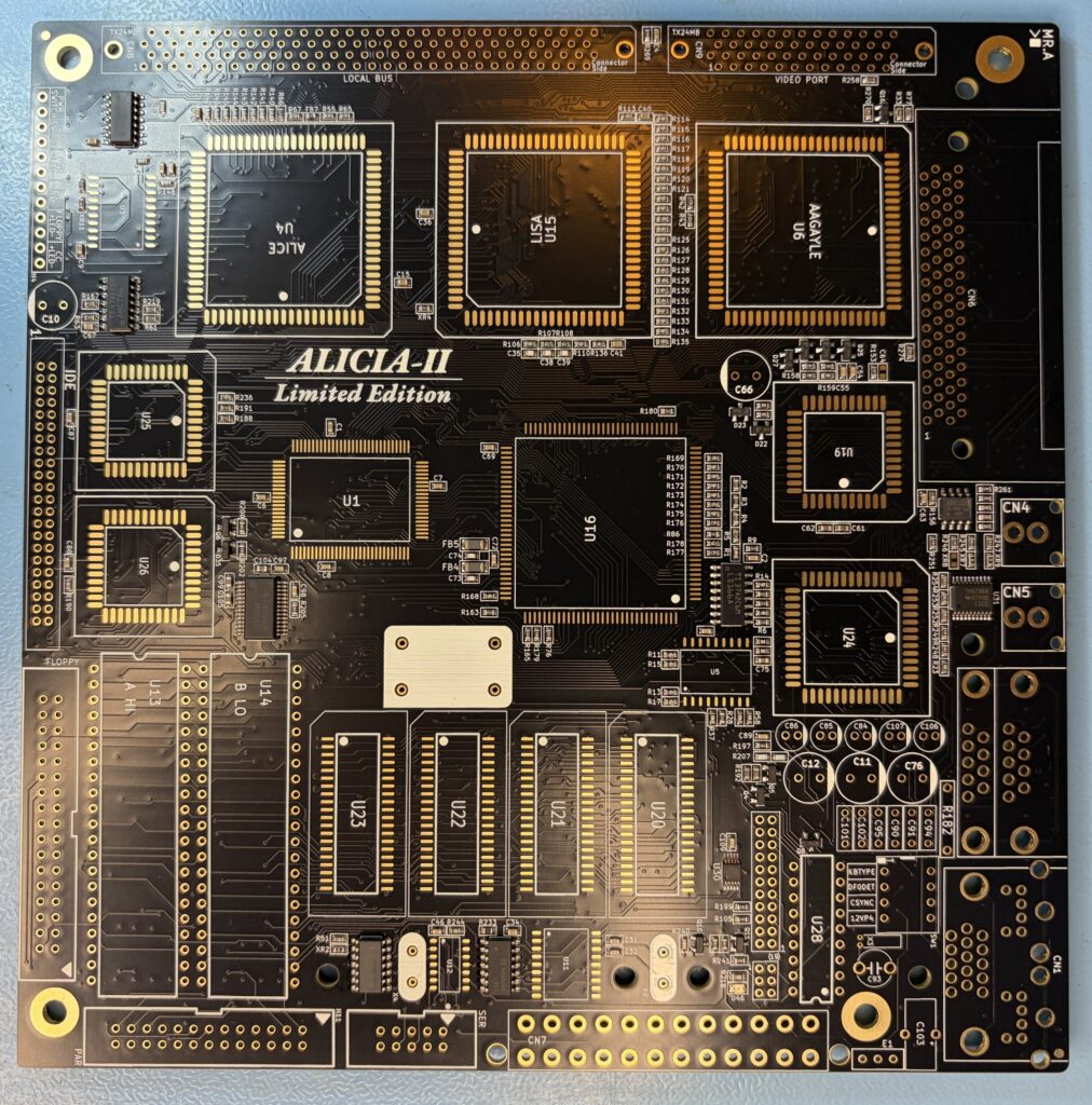 This is the popular Denise Mini-ITX “Purple Gold”. High Quality TG-155/ENIG PCB with most SMD’s pre populated from factory. Just add through hole components, sockets and enjoy a super slim and compatible AMIGA system.