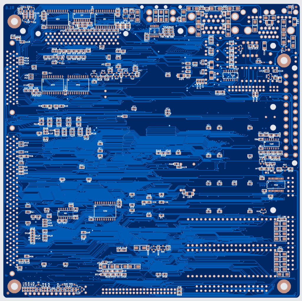 With direct access to the most important stuff on the back of the board. Including DIN Keyboard & Mouse, standard DB9 Joysticks and DB15 RGB Video as well as R&L Audio ports. Keeping other essentials like 9-pin serial, parallel and floppy drive on internal headers.
